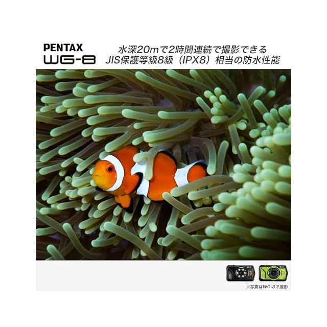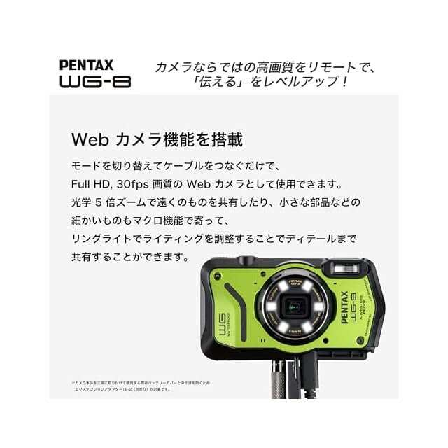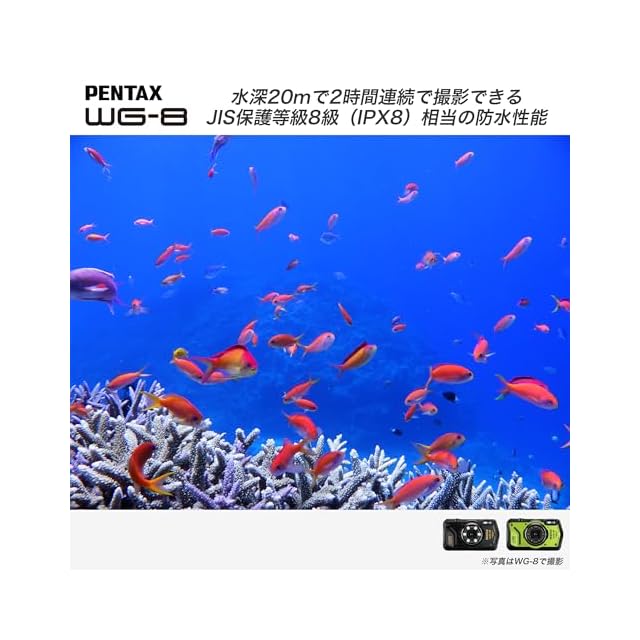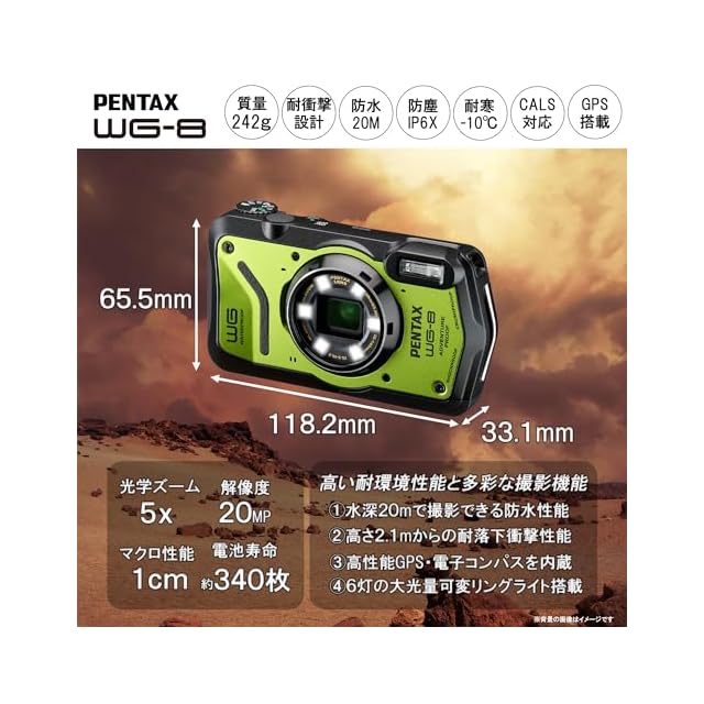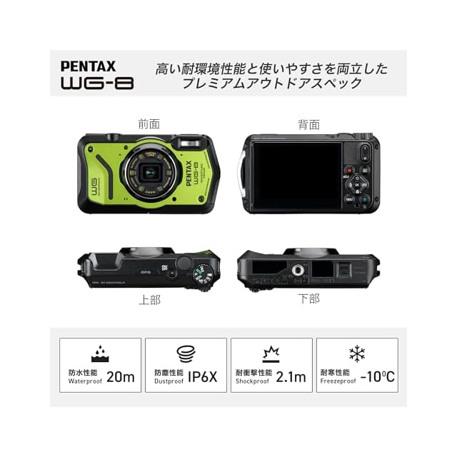 ペンタックス PENTAX WG-8 グリーン 本格アウトドアカメラ 【本格20m 防水】 2000万画素 【広角28㎜ 光学5倍ズーム】 【6灯の多機能リングライト搭載】 【工事・現場で活躍 / 「CALSモード」搭載】 【Webカメラ機能搭載】 【4K動画】 【高性能GPS内蔵】 1500