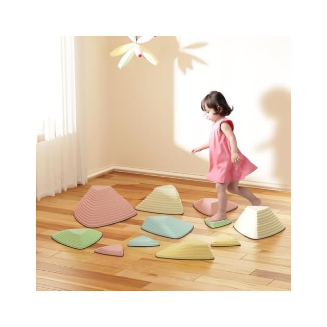 SFUN バランスストーン バランスブロック バランスボード 11個セット 子供 バランス 飛び石 平均台 体幹トレーニング 耐荷重70kg 運動 知育玩具 マルチカラー (マカロン(三角型))
