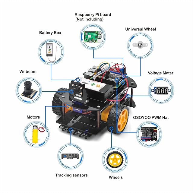 OSOYOO ロボットカー キット スマートカー Raspberry Pi 5 4 3B B+ ZeroW対応 STEM教育用DIYスマートキット 中学生と大人Pythonプログラミングの学習 ライン走行、Wifi IOT コントローラー、Web CSI カメラ チュートリアル付き Android/iOS APP ウェブカメラ リアルタイム動画 wifi ワイヤレス (電池 充電器 付)