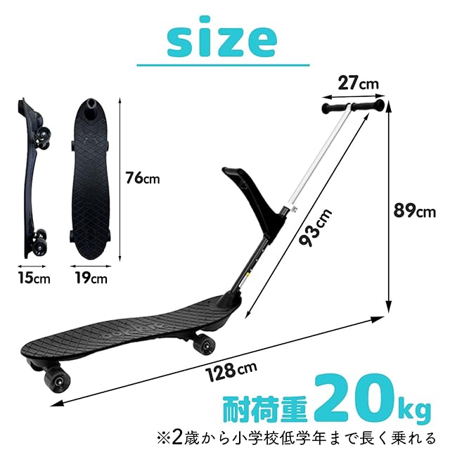 【ライダーハンドル】1人で乗るときに補助となります。持ち手があることで怖くありません。【トリプルハンドルロック】子供が乗るスケボーだから安全性を徹底。ペアレントハンドルとライダーハンドルは3か所のロック。