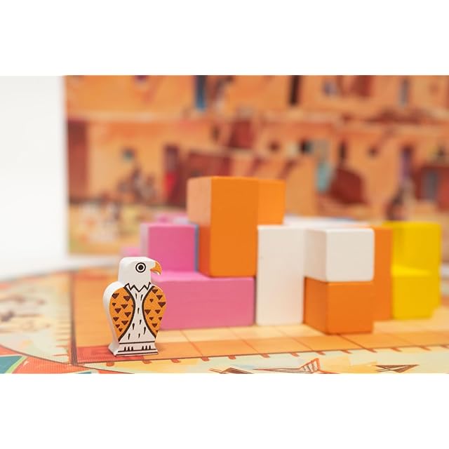 内容物 ゲームボード:1枚/ブロック:43個/プレイヤーコマ:4個/首長コマ:1個/足跡タイル:1枚/手番順タイル:4枚/庭タイル:4枚/布袋:1枚/説明書:1枚
