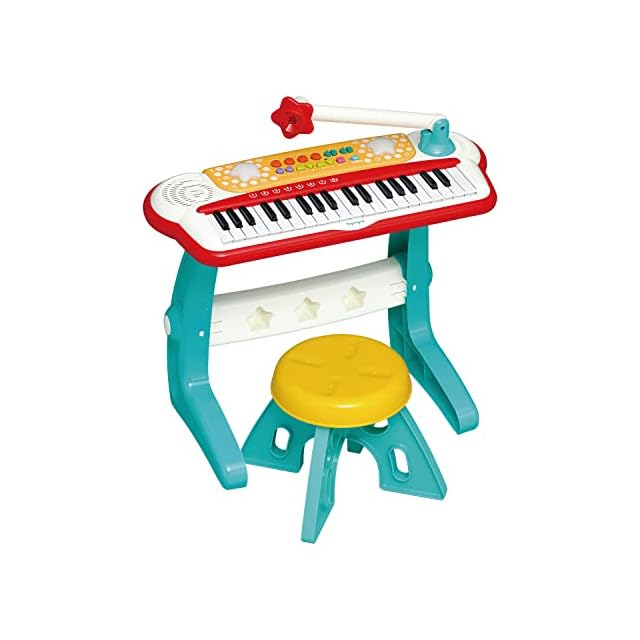 【正しい音程で遊べるキッズキーボード】37鍵盤の本格派キッズキーボードです。4和音機能搭載、正しい音程(ピッチA4=約440Hz)が魅力の人気のキーボードが明るい商品カラーになって登場しました。イス付きでお座りしながらピアノ練習ができます。
