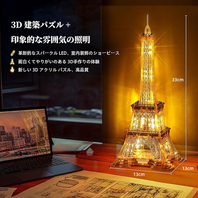 【パリの夜景を自宅で】モデルの96個のアクリル製パズルピースと69個の金属製パズルピースで、夕暮れ後のエッフェル塔の魅力を体験してください。複雑なデザインはタワーの輝く夜の魅力を再現しており、満足のいく建築の挑戦とパリのロマンスのタッチの両方をお客様の空間に提供します。