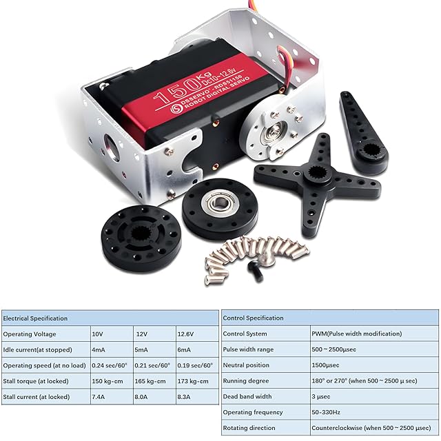 トルク:150kg.cm(10V)、165kg.cm(12V)、173kg.cm(12.6V)