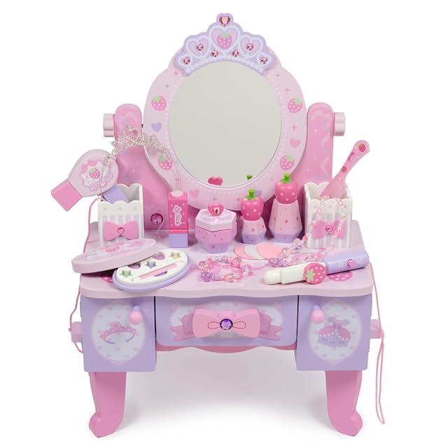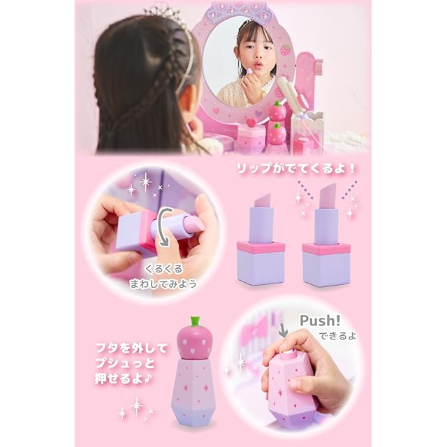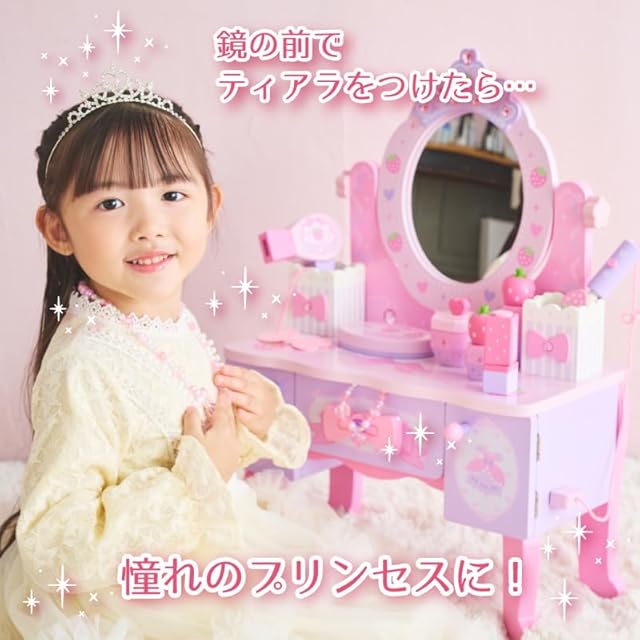 マザーガーデン ドレッサー おもちゃ [ティアラドレッサー ピンク] 小物12点 木製 ままごと ドレッサー 子供 4歳 3歳 女の子 プレゼント 誕生日 お祝い メイク おもちゃ メイクセット キッズ 263-37028