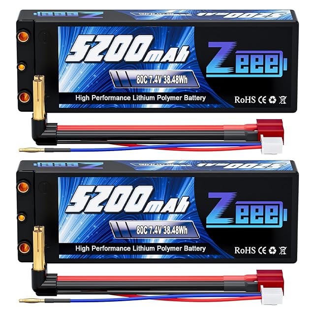 ゼエエ Zeee 7.4V 80C 5200mAh 2S lipo battery リポバッテリー RC バッテリー 大容量バッテリー ラジコン製品バッテリー RCカー用 ラジコントラック用 無人機用など (Φ4mmゴールドプラグ Tプラグ付き)(2パック)