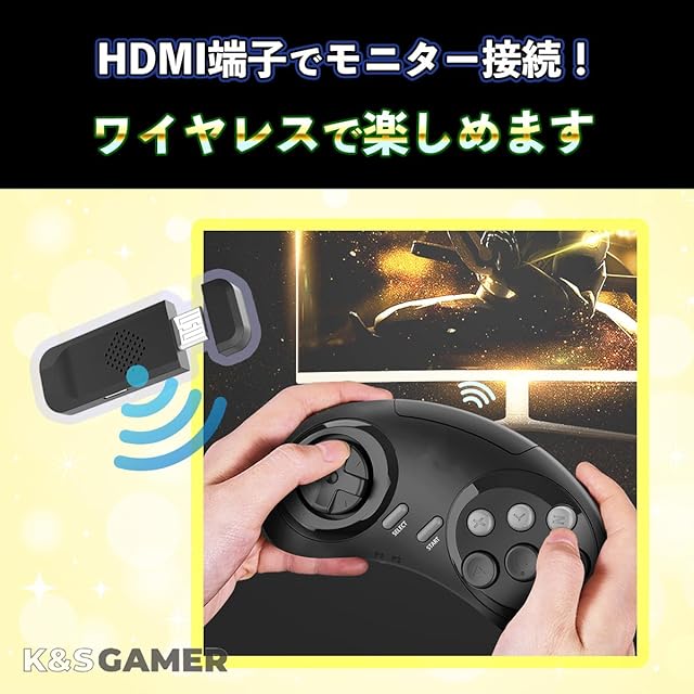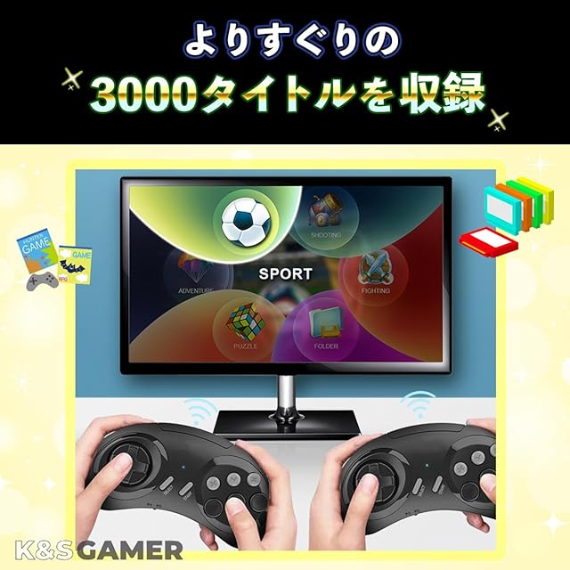 K&SGAMER 【3000のゲームが遊べる】 メガドライブ型 ゲームBOX ワイヤレスコントローラー 互換機 本体 レトロゲーム 3000種類内蔵