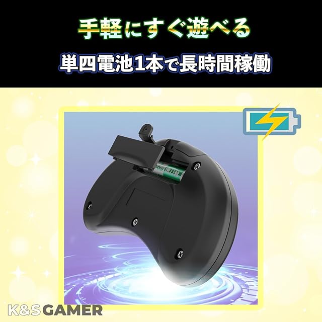 【手軽にすぐ遊べる】単四電池1本で長時間稼働!手軽に持ち運べて、どこでもゲームができます。