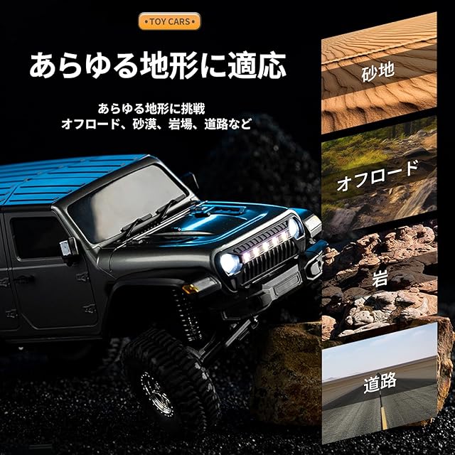 Ritaosan プロ ラジコンカー 子供向け 人気 オフロード ジープ 充電式 連動ライト 2.4GHz リモコンカー クローラー 4WD 操作時間80分 電動 おもちゃ 電波法認証済み 男の子 小学生 中学生 贈り物 クリスマス プレゼント (黒色)
