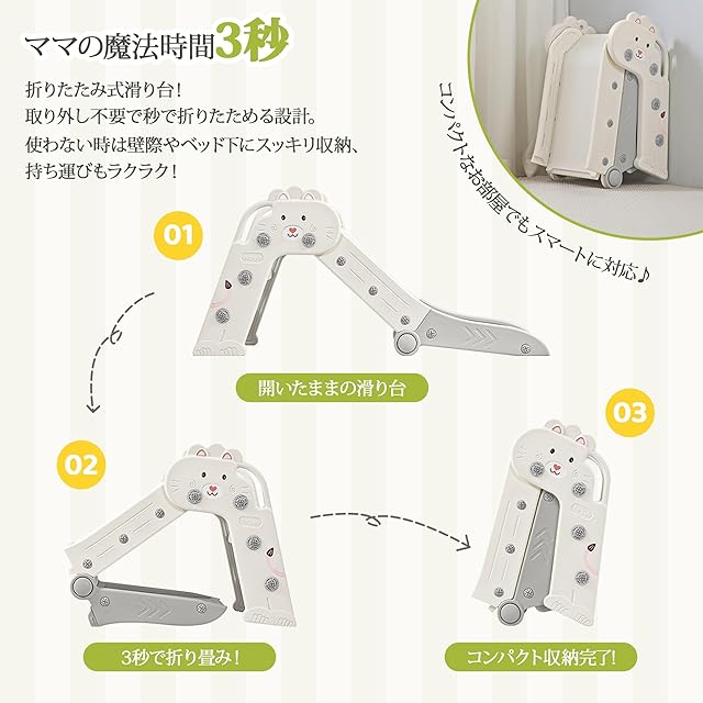 SPIEEK すべり台 室内 折りたたみ 滑り台 屋外 すべりだい キッズスライダー 室内遊具 簡単組立 子供用 安全設計 コンパクト 折り畳み おもちゃ 誕生日 プレゼント (112×40×55cm)【ホワイト】