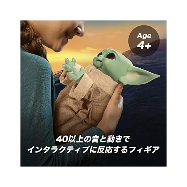 【ぎゅっと抱きしめてリアクション】もぐもぐグローグーは、抱っこして欲しいときに、手を思い切り伸ばして、抱っこおねだりポーズをします。 本製品は、4才以上の方向けのフィギュアとなります。
