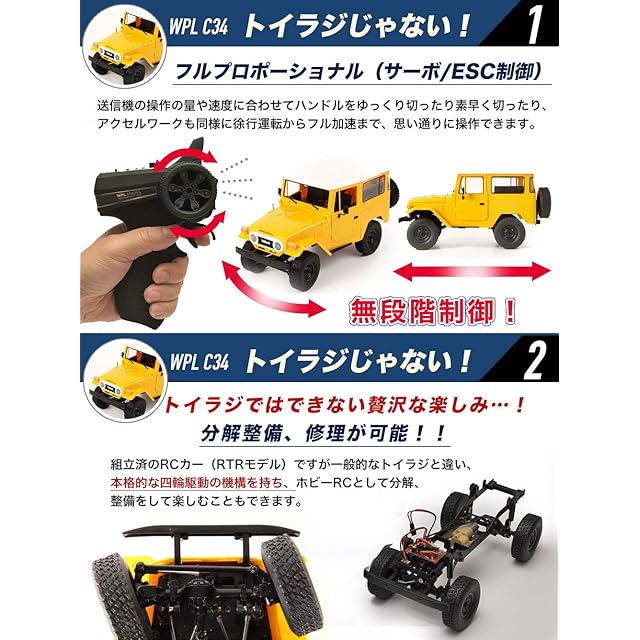 WPL JAPAN C34 WPL 正規品 技適マーク付き 1/12スケール 4WD 四輪駆動 RCカー ロッククローリング クローラー 本格的 バッテリー付き(イエロー)