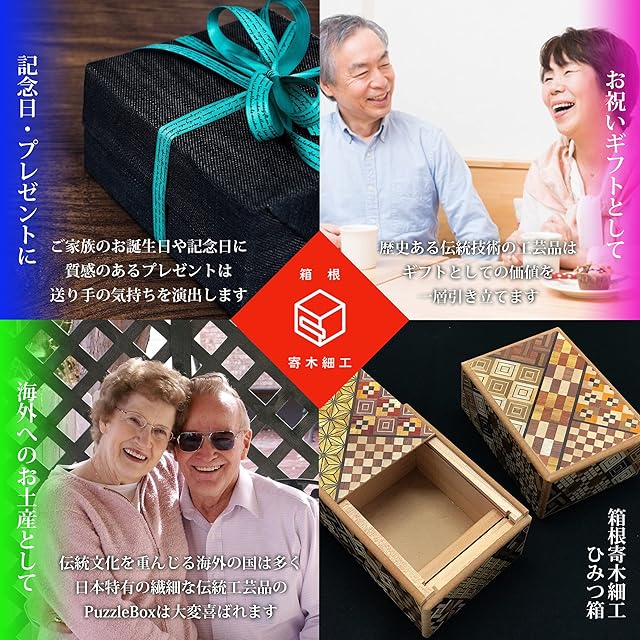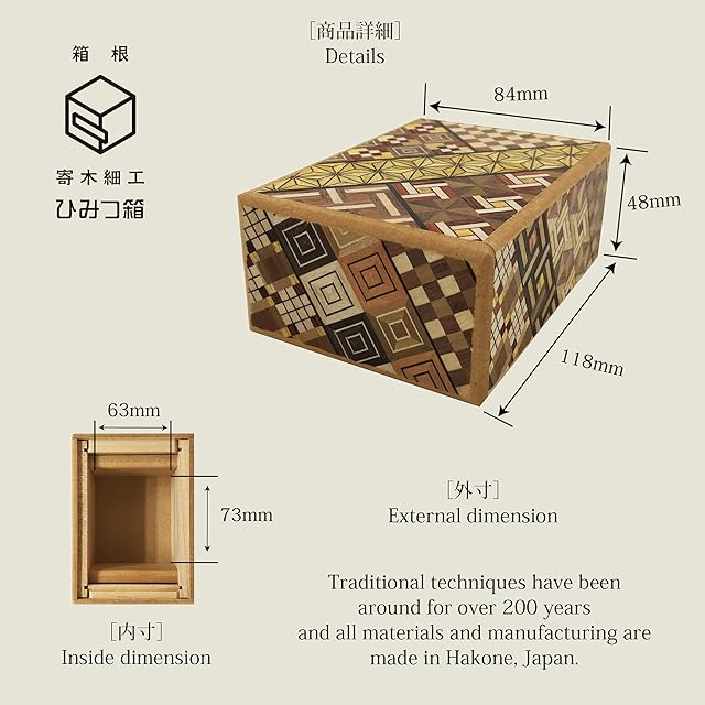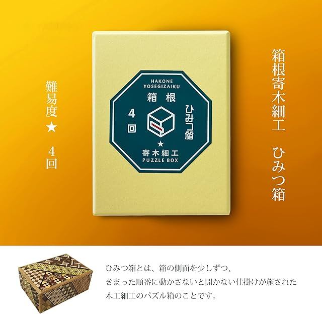 箱根 寄木細工 ひみつ箱 箱付き 伝統工芸品 パズル PuzzleBox HAKONE made 日本製 (スタンダードサイズ/4回 難易度★)