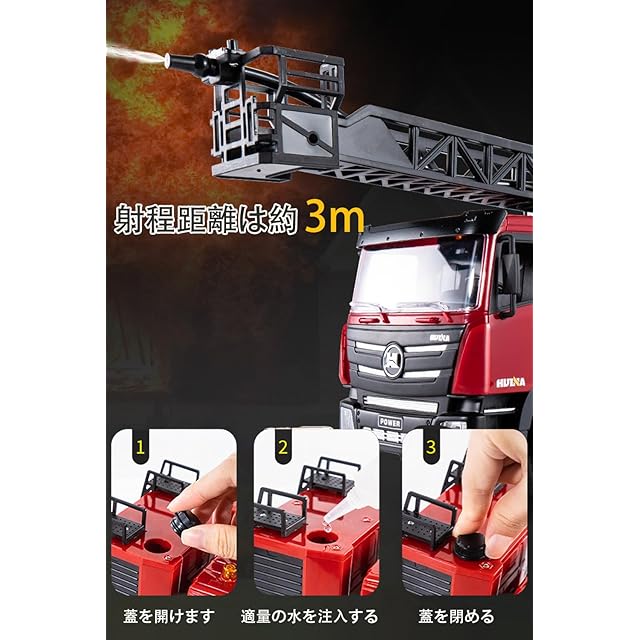 【はしご付き消防車】子供に大人気の消防車おもちゃです!消防車はいつでも話題になって、特にはしご付きの消防車です!付属のはしごは2段階伸縮することができます。また、台座を270°回転でき本物に近い消防車おもちゃです。リモコン消防車には、実際のシーンをシミュレートする放水機能が装備されています。、小さいな子どもだけでなく、大人の消防車コレクションにもおすすめです。