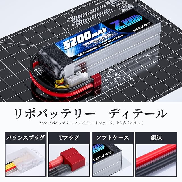 【高性能】ゼエエ(Zeee)14.8V 60C 5200mAh リポバッテリーは日本と韓国からの優れたリチウムポリマー素材があります。そして、最大のエネルギー密度が235Wh/kgまで。リポバッテリーはメモリー効果がないので、昼休みや時間がある時に充電しても、いずれ問題がないです。