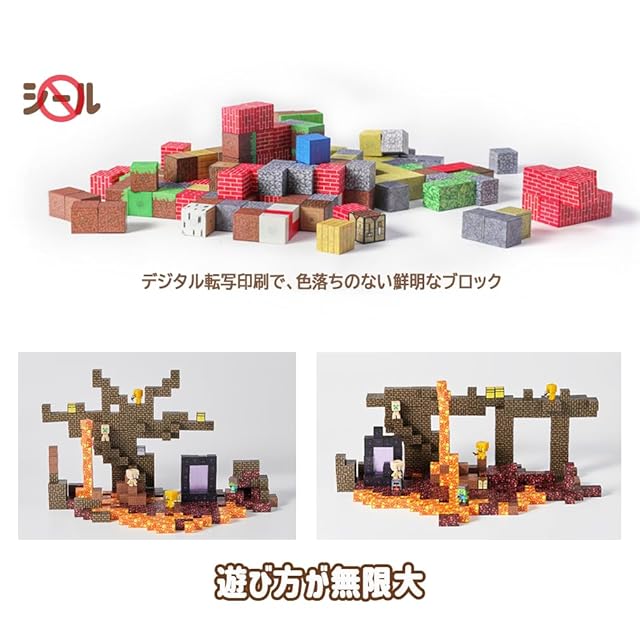 【楽しい新感覚ブロックセット】このブロックセットは、遊び時間を魔法のような創造的な冒険に変えます。子供が夢中になって遊び、楽しみながら、自然と3D空間に触れる機会をたくさん持つことです。マグネットブロックで、神秘的な洞窟、家、田園、ワープポータルなどを作りましょう。