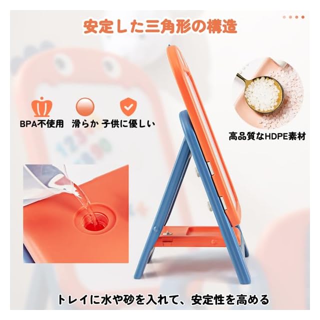 【安全で頑丈な設計】このイーゼルセットは、BPAフリーのHDPE素材を使用しており、お子さまでも安心して使えます。安定した三角形の構造により、非常に堅牢で耐久性があり、トレイに水や砂を入れてさらに安定性を高めることも可能です。