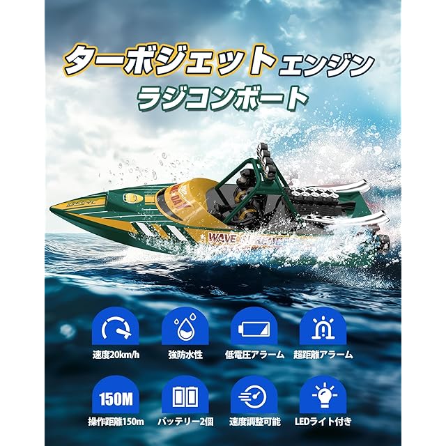 DEERC ラジコンボート ラジコン 船 おもちゃ こども向け 大人向け リモコンボート RCボート 強防水性 操作距離150m 速度20km/h 速度調整可能 LEDライト付き 低電圧アラーム 超距離アラーム 2.4GHz無線 衝突防止ヘッド 男の子 子供 小学生 中学生 6歳 8歳 10歳 誕生日 こどもの日 プレゼント 贈り物 日本国内認証済 DE95 グリーン