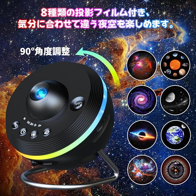 ご購入前に必ずご一読ください。❶投影の推奨距離は2.0~3.0m、投影面積は7.71~14.66畳が推奨です。この距離と面積を確保できなければピントを合わせてもきれいな星空を映せません。❷実際肉眼で見た星空の自然なぼやけをより忠実に再現するために、ピント合わせの効果は想像しているほど高精細ではない可能性があります。❸機械制御なのでモーター音がちょっとします。❹本製品を使用する際は、部屋を真っ暗にする必要があります。ご了承いただきました上でのご購入をお願いいたします。