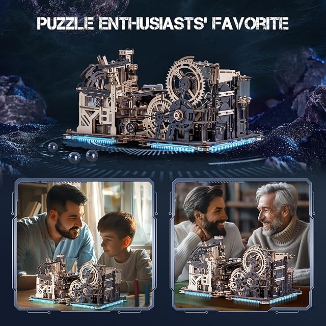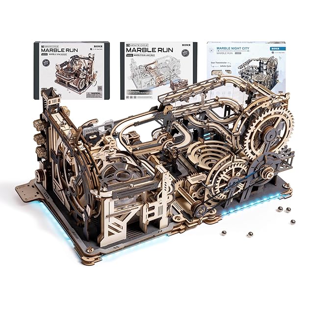 ROKR 立体パズル 電動マーブルラン LGC01&LGA01&接続部品 3点セット 可動式モデル マルチ遊び方 メカニカル 木製 3D ウッドパズル 工作キット DIY クラフト 組み立て 暇つぶし 知育玩具 中学生 男の子へのギフト 誕生日 クリスマス