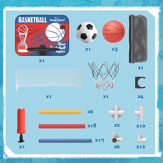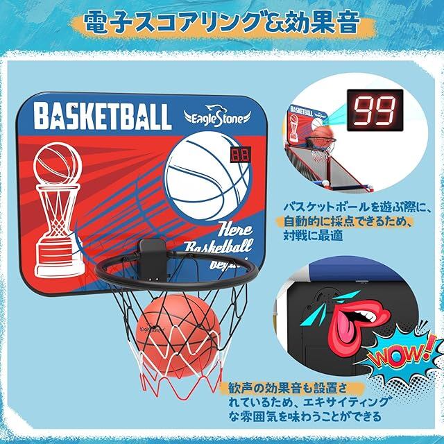 EagleStone バスケットゴール サッカーゴール 屋外 室内 おもちゃ 子供用 2in1ゴールセット バスケットボール3個 サッカー1個付き 自動採点 歓声 組立式 ストレス解消 小学生 男の子 バスケットボールネット家庭用 トレーニング クリスマス プレゼント 新年 ハロウィン ギフト 子供 ES36