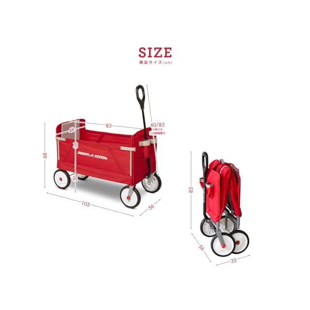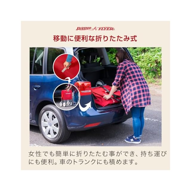 【乗り心地抜群!コンパクトに畳めベンチにもなる折りたたみ式ワゴン】 アメリカの家庭には一家に一台あると言われるラジオフライヤー。こちらはお子様を乗せたり荷物を快適に運べる大きなワゴンタイプ。ベンチとしても使えるのでおでかけ時の休憩タイムにも活躍します。