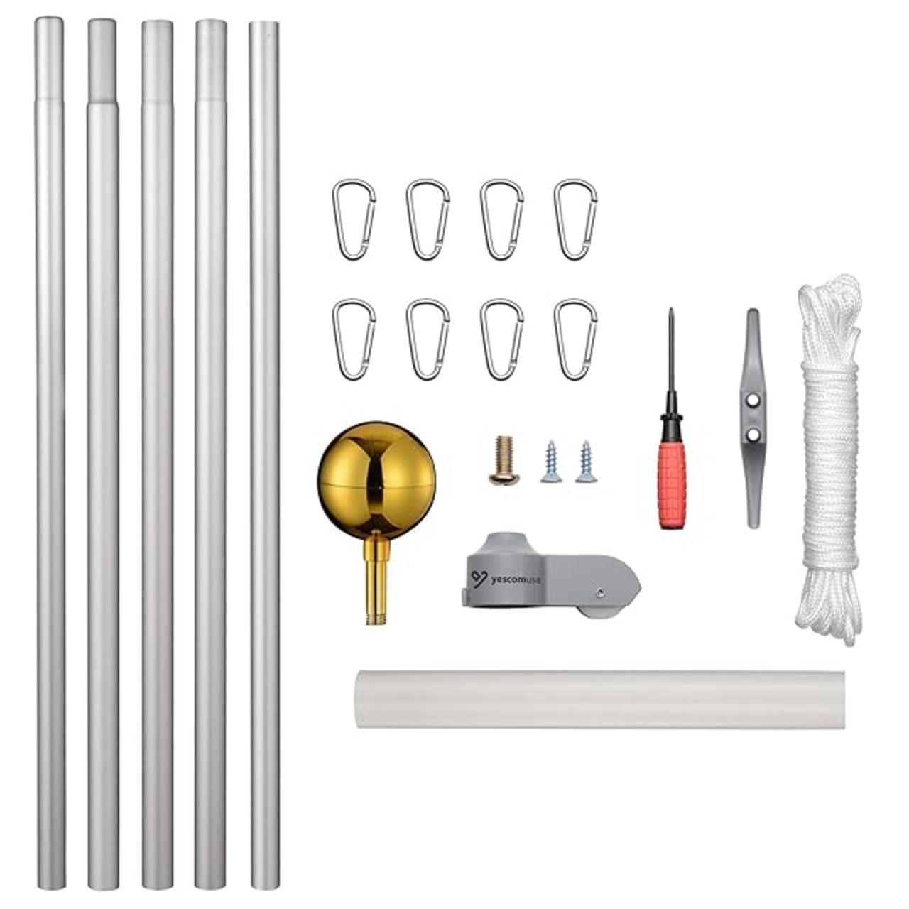 Yescom アルミ 鯉のぼりポール 6m (3m鯉用) ロープ 滑車付き こいのぼりポール 埋め込み 庭 屋外用 鯉のぼり用ポール 端午の節句 飾り 五月五日 男の子 初節句 こいのぼり用 ギフト プレゼント 【鯉のぼりポールのみ】