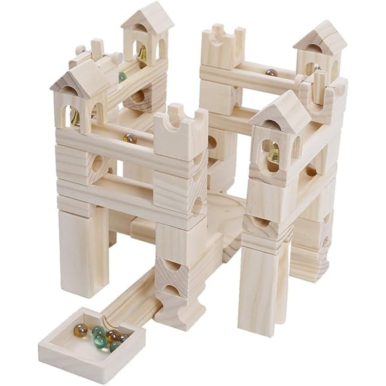 U.STAR 木製 ブロック スロープトイ 80pcs 積み木 ビー玉転がし 知育玩具 立体 パズル 食品安全検査済