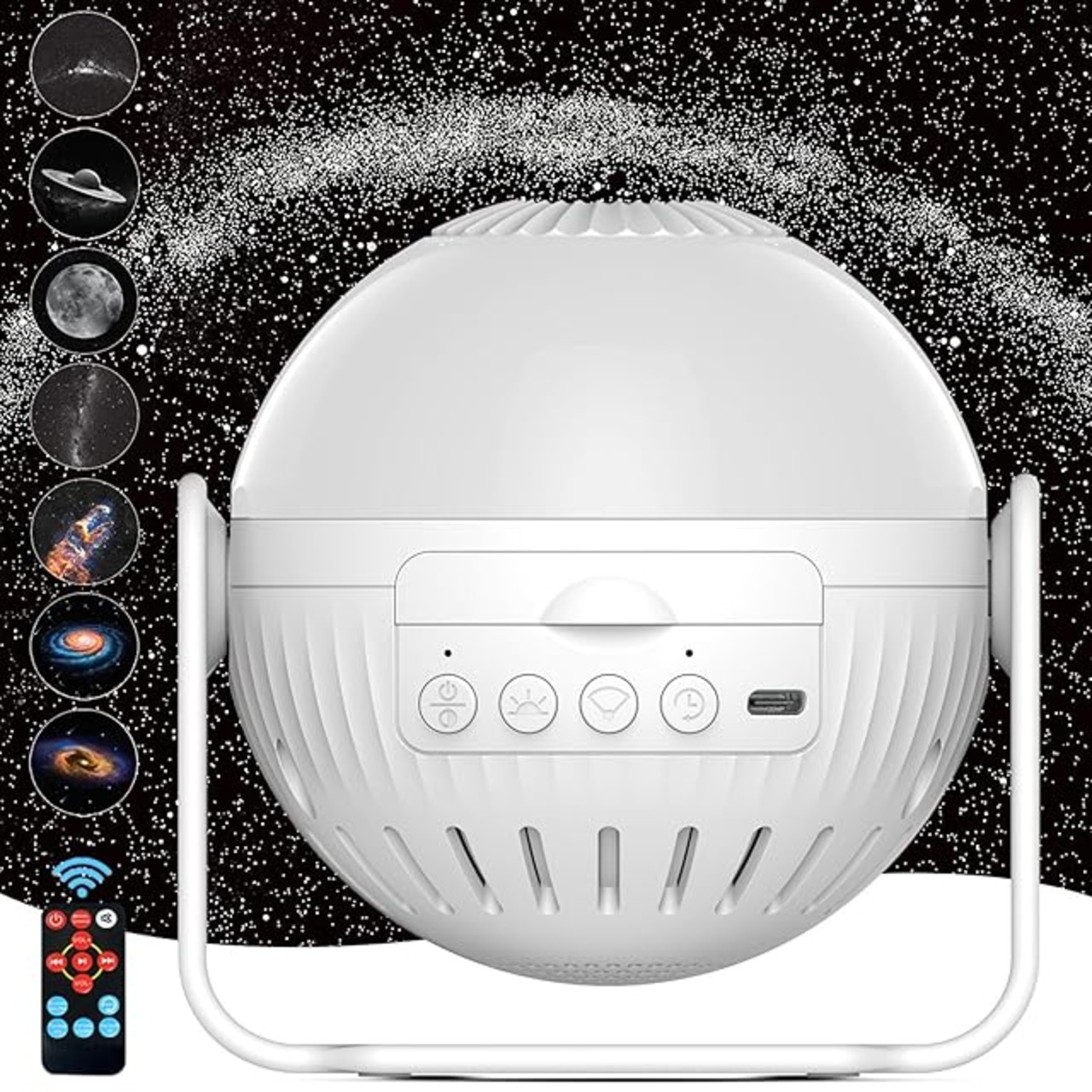 【7種類映画フィルム】スタープロジェクターライトには天の川、創生の柱、月、土星、銀河、銀河の渦、星雲7つのテーマフィルムが含まれており。夢のような銀河や印象的な星雲を投影し、素晴らしい銀河の夜空を室内に再現します。お子様の寝室で静かな銀河を楽しむことができます。
