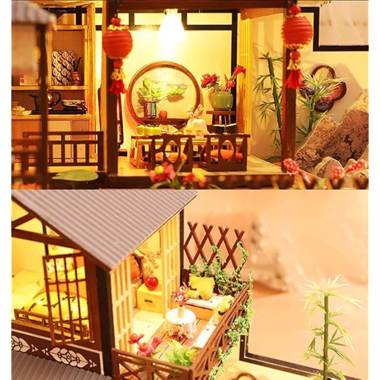 moin moin ドールハウス ミニチュア 手作りキット セット 和風 日本の家 【 英語説明書 付属 】 豪邸 秋 もみじ 紅葉 二階建て | 大型 | LEDライト (日本家屋) 2006DH160