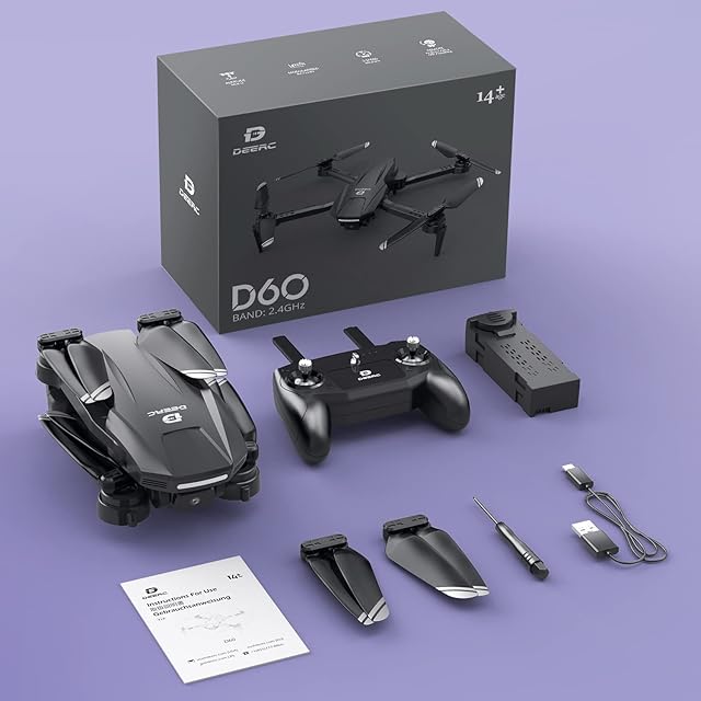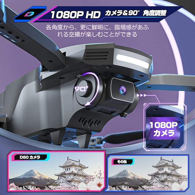 ドローン カメラ付き DEERC 折りたたみ式 1080Pカメラ 90°自動調整可能 初心者向け 軽量 ミニドローン 操作時間22分 高速旋回モード ホバリングモード ヘッドレスモード 2.4GHz 3段階速度調整 国内認証済み 誕生日 プレゼント D60