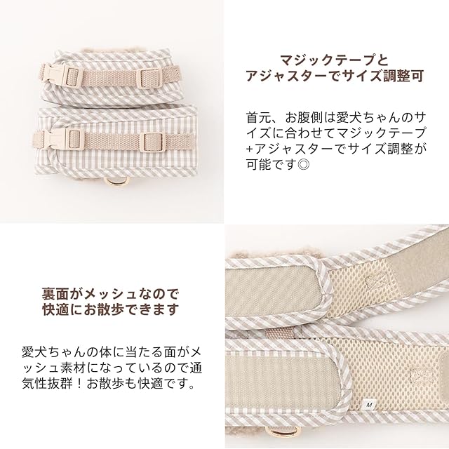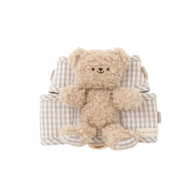 monchéri モンシェリ [くまさんギンガムチェックおんぶハーネス+リードSET] 犬 ハーネス リード 小型犬 中型犬 (S/ベージュ)サイズ調整可能 リードセット 犬用 お散歩 お出かけ