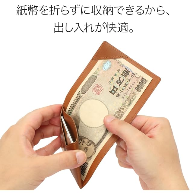 金属の部品は全く使用していないので、服やカード類を傷つけません。紙幣を二つ折りせずに収納できるから、出し入れが快適です。